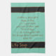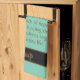 Waffle weave towel is Aqua coloured with Black & Brown text and striping on a whimsical towel with a cute slant on life. Customise or buy as is.