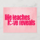"life teaches love reveals" pink slogan postcard