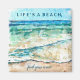 Abstract Beach and Coastal Sea and Sand Painting on Magnet With Quote "Life's A Beach, Find Your Wave." Perfect for the cabin, cottage lake, or ocean side beach rental. It has a beautiful shoreline, waters edge painting in blues, teals and creams. Design by JennsEmporium. This artwork is also available on other products for mixing and matching from Jenn's Emporium.