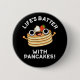 Life's Batter With Pancakes Funny Food Pun Dark BG 6 Cm Round Badge