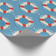 A repetitive nautical-themed pattern featuring life preservers with bold red and white accents against a vivid blue background. The design captures a marine safety vibe, evoking seaside adventures and oceanic charm.