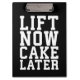 Lift Now, Cake Later - Carbs - Funny Workout Clipboard