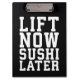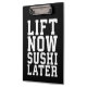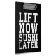 Lift Now, Sushi Later - Carbs - Funny Novelty Gym Clipboard