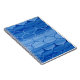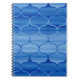 Stylish lined notebook features a light and dark blue painted ogee design on the cover. Interlocking ogee shapes range from dark blue to light blue and back. In contrast, the continuous S curve outlines shift from light blue to dark blue and back. The painted blue geometric shapes have a pleasing calm look. The paint strokes add variation to the colours and reveal the texture of the watercolor paper they were originally made on.