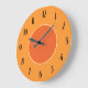A simple wall clock with a light orange background under art deco black numbers and a darker orange face with a thin white outline. For any orange decor kitchen or room. Click Customise It to add your custom text, change background colours and more.