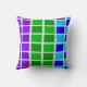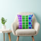 A photo of a colourful peacock’s feathers inspired this purple, blue and green squares throw pillow.