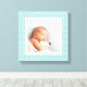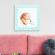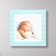Display a favourite photo in subtle and elegant style with our wrapped canvas, featuring a square border in light aqua and white with a lattice trellis pattern. Perfect for adding a special touch to a gallery wall or for displaying a photo of your newborn baby!