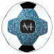 Personalise faux sparkly trendy girly sport equipment soccer ball with your initial and name. Beautiful girly glamourous light blue shiny glitters sparkles blue summer colours. We use photo of blue sparkles, not actual glitter! Faux sparkles!