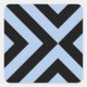 Alternating light blue and black chevrons converge in this bold, original geometric pattern.