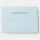 Light blue envelope with personalised return address on back flap and burlap print design inside to compliment our wedding invitations. Outside of envelope can be changed to any colour to compliment your wedding.