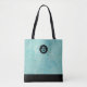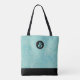 Light blue and gold Palm Leaves Pattern Monogram Tote Bag