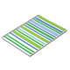 This blue and green striped notebook is perfect for notetaking and journalling. Design by artist Becky Volk.