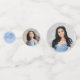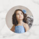 Create your own confetti by adding your own photos and custom text to this elegant DIY template with small, medium and large size circle dots. The festive fairytale floral design by Raphaela Wilson features an ombre fade of light baby blue watercolor roses with silver petals / greenery leaves, faux glitter sparkle butterfly confetti, and a diamond like tiara princess crown. For a quinceanera celebration, you can insert 2 photos: a glamourous Mis Quince Anos photo along with a young child picture to reflect past and present. This personalised photo confetti template with flowers can add to the beauty of your table decor not only for a happy birthday party of any age, but also for dusty blue weddings, a bridal shower, Cinderella princess baby shower, winter wonderland sweet 16, graduation and other special occasions. Not only will you be adding some colour to your tables, but you will be sending your guests love and thanks as well (personalised thank you message located on the back of the medium confetti dot). Keep the elegant calligraphy script and modern typography, or change it up to your own font style. You can even insert an additional third photo by replacing the light blue rose on the small confetti dot. Enjoy! Category: elegant confetti with photos; XV / 15th birthday party confetti; and thank you table confetti with butterflies for kids. Baby blue and silver party theme colours: girly powder pastel blue, light grey, dark grey, silver and white.