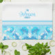 Light blue and White Abstract with striped & name Tea Towel