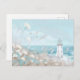 Escape to the serene beauty of the coast with our stunning watercolor postcard featuring a white and blue coastal landscape. Perfect for all beach lovers and sea enthusiasts. Let the calming waves and sandy shores bring a piece of the ocean to you wherever you are. Order now and let your mind drift away to the seaside paradise.