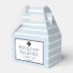 Perfectly classic pale light blue and white seersucker striped with black accents hangover relief kit favor box that is customizable.