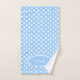 Blue with white polka dots towels, each towel can be personalised with your own name and initial letter. Original design by www.mylittleeden.com