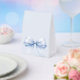 A versatile folded paper table tent with a beautiful illustrated bow. Comes blank so you can write your own text by hand — perfect for food labels, name cards, favor tables, candy buffets, reserved signs and more. A budget-friendly option for Confirmation, Sweet 16, Quinceañera, baby showers and birthday parties.