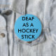 Light blue button/pin, "Deaf as a Hockey Stick" 10 Cm Round Badge