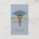 Light Blue Caduceus Faux Gold Foil Stripes Medical Business Card