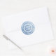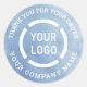 Personalised business stickers with customise company logo, name and message on watercolor light blue background, modern and trendy.