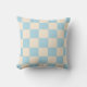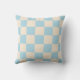 A light blue and cream chequerboard pillow with a clean geometric style. Perfect for modern decor.