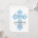 A soft, light blue cross design elegantly covers the entire invitation, symbolising faith and purity.
