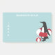 A penguin is standing with a red and white inner tube and beach ball with a light blue background. This pretty animal cartoon with personalised text makes cute and unique post it notes.
