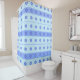 Light Blue Dark Blue Flowers Pattern Shower Curtain