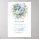 Welcome guests in elegant style with this bridal shower welcome sign featuring watercolor dusty blue, pastel blue, and light blue peonies accented with eucalyptus greenery and soft gold details. Designed in a chic boho, bohemian, or rustic aesthetic, this floral bridal shower welcome poster creates a beautiful focal point at the entrance of your celebration. The timeless blue and gold colour palette pairs perfectly with modern, romantic, or garden-themed décor. Professionally printed on premium materials through Zazzle, this customisable welcome sign offers rich colours, crisp detail, and a polished finish to complement your coordinated bridal shower stationery suite beautifully.