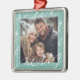 Light Blue Fancy Script "Merry" Christmas Photo Metal Tree Decoration