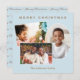 Send festive holiday wishes with this elegant ice blue Christmas card, featuring three of your favourite photos. The greeting 'Merry Christmas' is at the top, in faux gold text for an extra festive look. Add your name(s) or other message below the photos for the finishing touch. Combining tradition and sophistication, this card is easy to personalise and a stylish way to convey your seasonal greeting to family and friends.