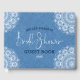 Light-blue faux linen texture background with white ornate mandala elements. Modern hand-written typography-Bridal Showers- in white with customisable text in navy-blue.