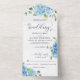 Light Blue Floral Botanical Hydrangea Boho Wedding All In One Invitation