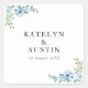 watercolor light blue flowers wedding sticker. The text details and colours can be edited.