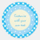 Light Blue Gingham Fancy Custom Text Classic Round Sticker