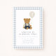 Celebrate your little boy’s big day with this charming light blue gingham teddy bear birthday invitation. Featuring a sweet brown teddy holding a balloon and dressed in overalls, this adorable design is perfect for a 1st, 2nd, or toddler birthday celebration. The light blue gingham pattern adds a soft and classic touch, making it ideal for baby showers or bear-themed birthday parties. Personalise with your child's name and party details. This cosy and timeless teddy bear invite suits any gingham nursery or soft animal party theme. A perfect keepsake and invitation all in one!