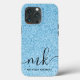 Light Blue Glitter Bokeh Custom Monogram and Name Case-Mate iPhone Case