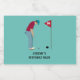 Teal blue golfer, wearing a cap, red shirt and blue pants, putting a golf ball into a hole design bottle label. Customise the text.