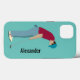 Light blue and red golfer putting golf ball design phone case with customisable text.