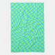 Light Blue & Green Warped Chequerboard Pattern Tea Towel