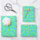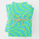 Light Blue & Green Warped Chequerboard Pattern Wrapping Paper Sheet