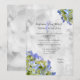 Elegant, blue floral wedding invitations. Pretty hydrangeas of white and blue make this a beautiful choice for a wedding at any time of year.