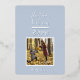 The iconic “Noel” Christmas tree in blue.. The tree is created from shapes and angles, with a trace of foil in key places. The back has attractive text with a Christmas blessing, and your photo. Send friends and family a centerpiece of cards!