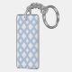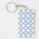 A stylish, geometric pattern featuring a lattice of light blue. The baby blue cross-hatching separates large and small white diamonds.