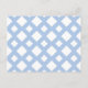A stylish, geometric pattern featuring a lattice of light blue. The baby blue cross-hatching separates large and small white diamonds.
