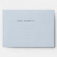 Chic and simple wedding envelope with a light blue jacket and elegant black font. Includes a lined area in the front and return address at the back.