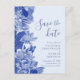 Light Blue Lotus Floral Chinoiserie Save the Date Postcard