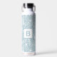 Modern light blue botanical pattern monogrammed bottle.