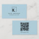 A modern light blue themed business card design incorporating your business initial as a monogram logo and your QR Code. This elegant business card is ideal for all types of professions. A simple and professional way to introduce your business. Personalise your details to create your own unique business card. A perfect business card for anyone.